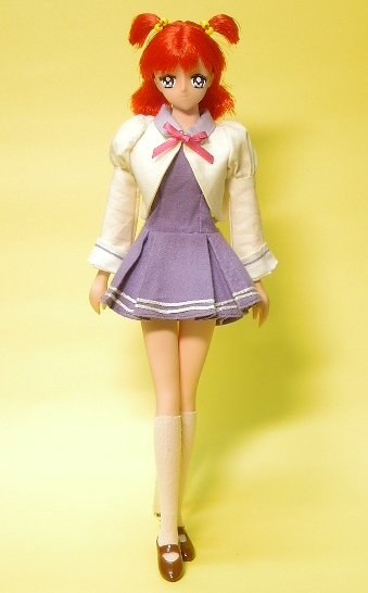 これ、プリキュア5ののぞみのつもりです。どこがやねん。と自分でも突っ込みそうですが、髪も目も服も一応プリキュアどうりでしょ? コレは失敗作ではありません。実は私、プリキュアの絵、好きになれんのですよ。あれって、萌えとはなんか違うもんありません? 低年齢層ねらいだから、敢えて萌えが寄り付かないようにしている?それとも、私が古いだけかなぁ。新人類にはアレが萌え? とはいえ、服もキャラも好きなので、オレ流にしました!ちなみに、右手が骨折している時に作ったドールなんで、近くで見たらかなり荒いですが、どっちみちオレ流なので、修正はせずにこのままです。どうでもいいですけど、手が骨折しても、出来るもんですよドール作成。ヘアセット、アイペはほぼ片手で普通に出来ましたが、ミシンやっているときには、さすがに患部が腫れてきて、ギブスを押し上げ血が行かなくなり、指先が紫になってきたのはビビりました。怪我しているときは、安静にしましょう(笑)。 |